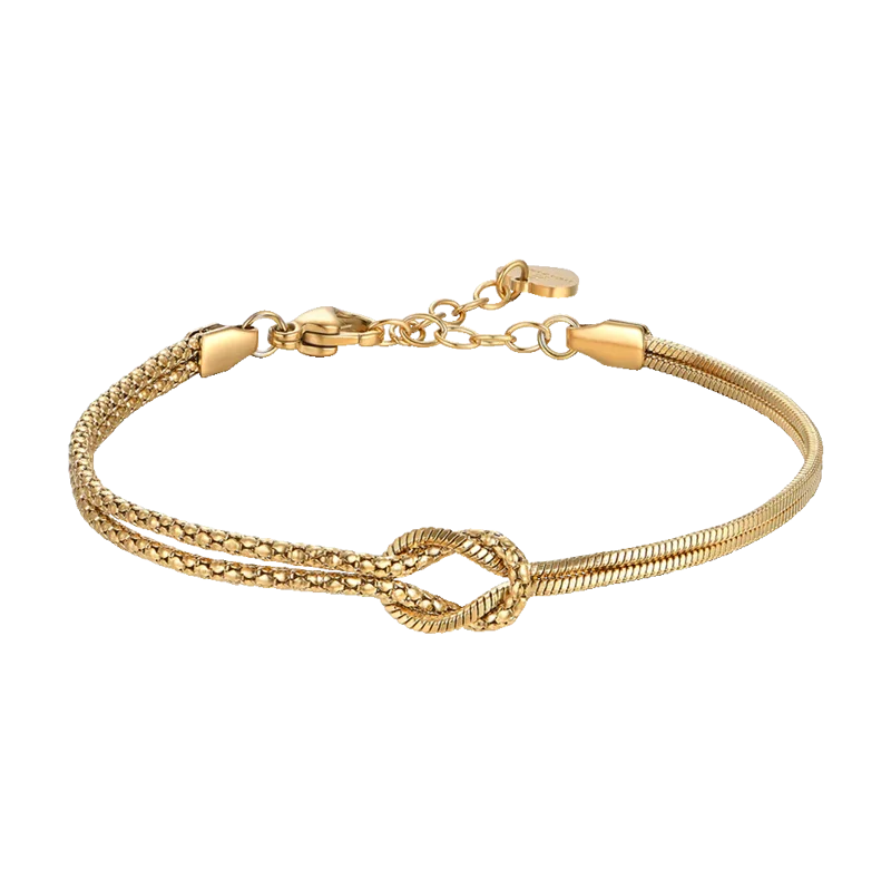 Il Bracciale Donna Luca Barra (BK2904) illumina i sentimenti più profondi con la sua finitura preziosa. Realizzato in acciaio IP Gold, questo gioiello della collezione Legami presenta un nodo centrale, simbolo eterno di unione e vicinanza che supera ogni distanza.