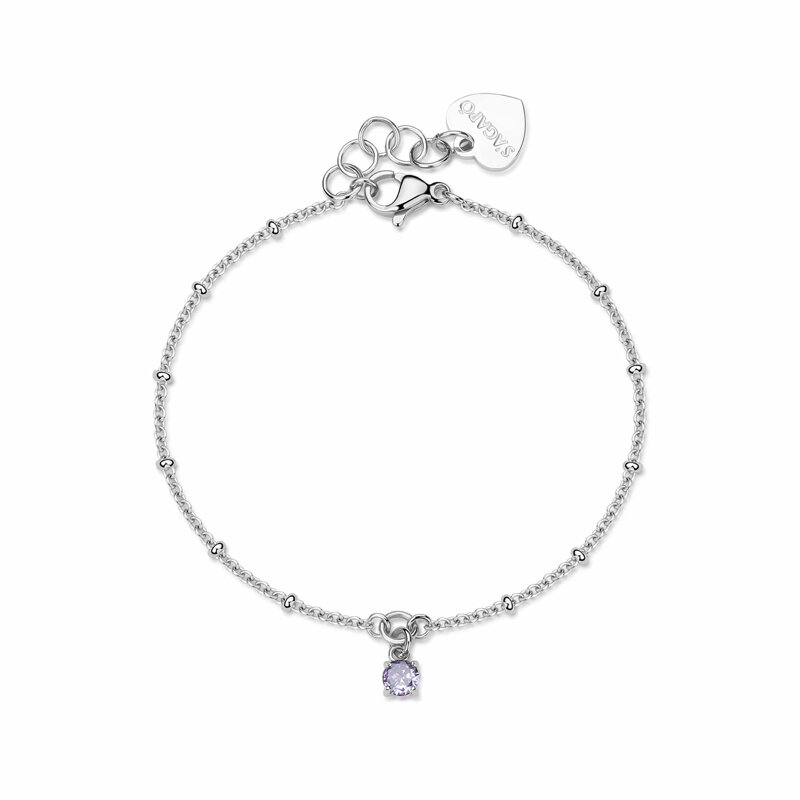Armonia e Colore: Collezione Joy La collezione Joy di S'Agapõ porta al polso la vivacità dei colori in una veste elegante e minimale. Questo bracciale (Ref. SJY015) è realizzato in lucido acciaio inossidabile 316L, un materiale scelto per la sua resistenza e luminosità inalterabile. Al centro della sottile catenina spicca un pendente con cristallo color ametista.