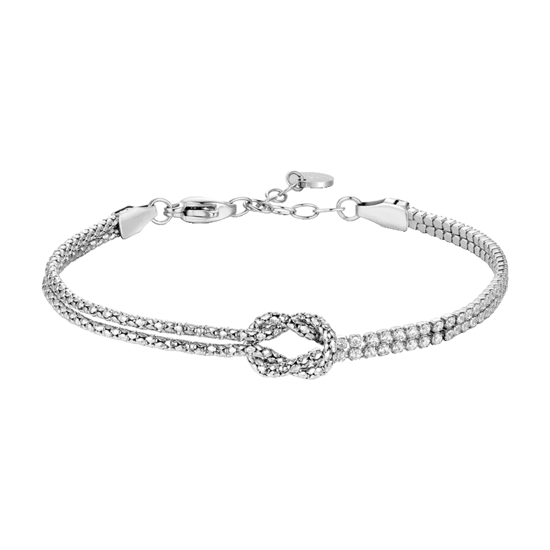 Il Bracciale Uomo Luca Barra (BA1926) celebra la forza dei sentimenti con un tocco di eleganza luminosa. Parte della collezione Legami, unisce la solidità dell'acciaio al simbolo del nodo, qui impreziosito da discreti zirconi bianchi che ne esaltano la forma e l'importanza.