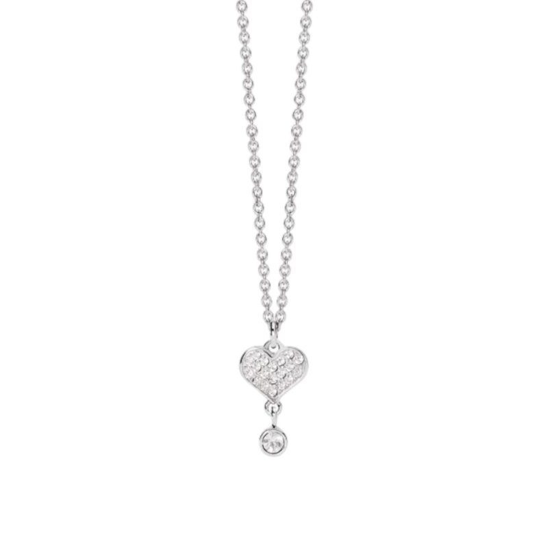 Questo gioiello è l'accessorio ideale per chi ama i dettagli romantici e luminosi. La collana è composta da una catena rolò in acciaio color silver resistente e anallergico. Il ciondolo centrale è un delicato cuore (9.5 x 8.3 mm), elegantemente impreziosito da un pavé di cristalli bianchi scintillanti. Il design è completato da un cristallo bianco pendente aggiuntivo (9.5 x 16 mm), che aggiunge movimento e un punto luce dinamico.