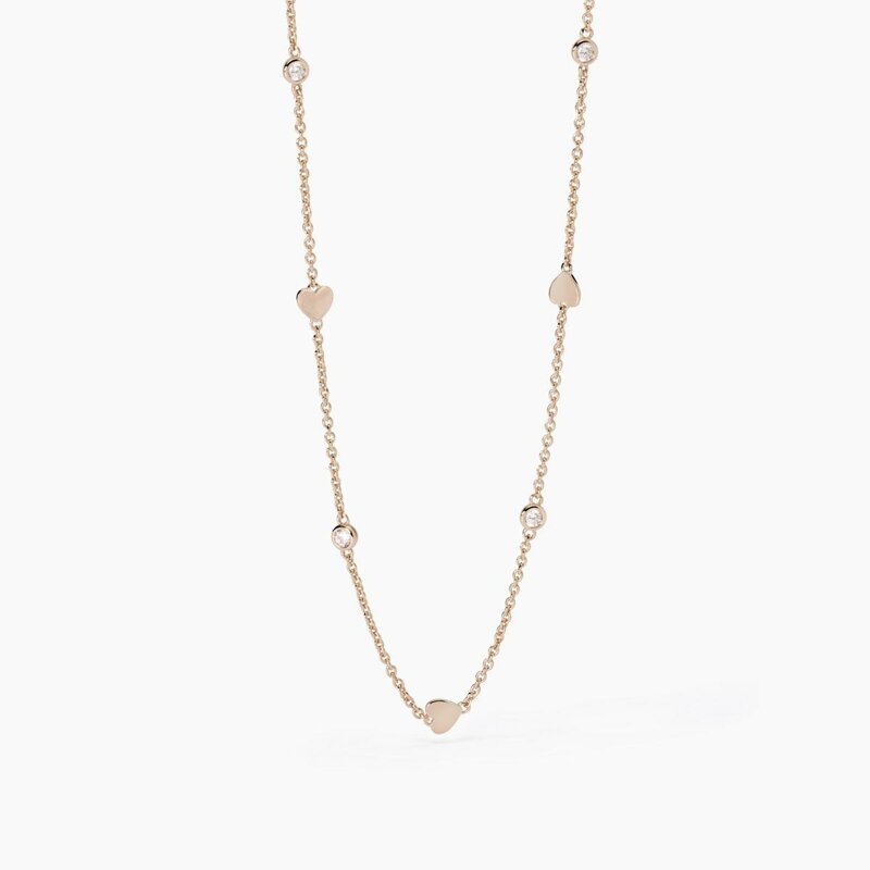 Girocollo regolabile da donna in argento placcato oro rosa 18K con catena forzatina, elementi a forma di cuore e zirconi.