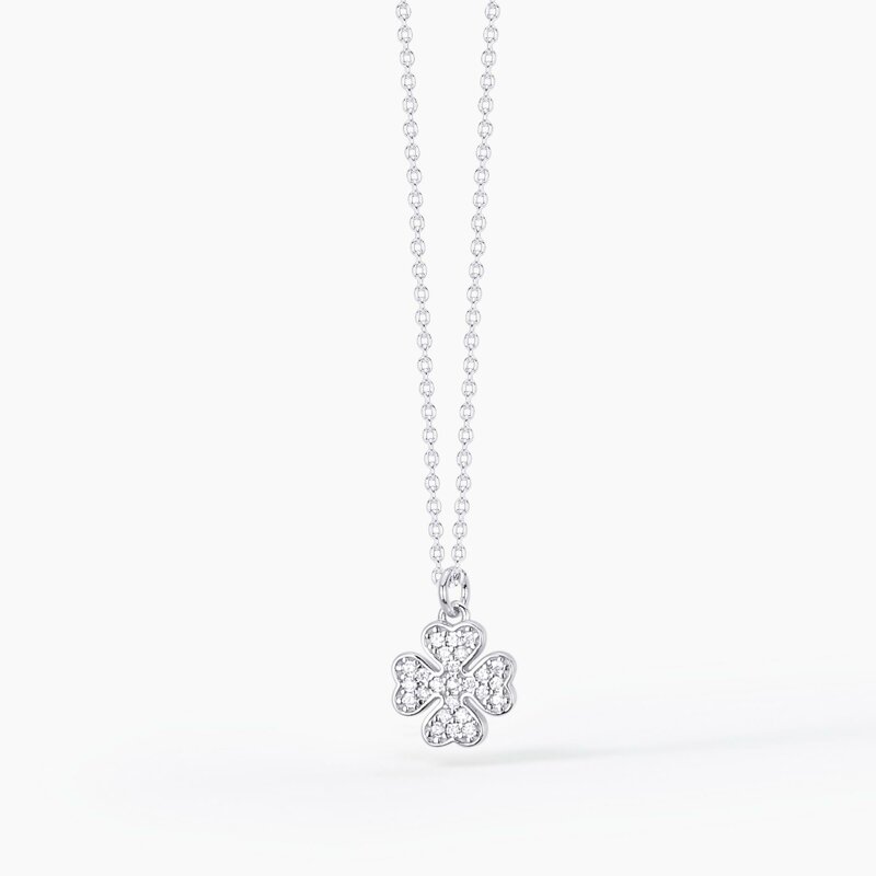 Girocollo in argento con ciondolo a forma di quadrifoglio in pavé di zirconi.